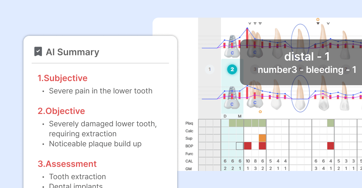 AIzac provides ergonomic and efficient charting, allowing dental hygienists to have more control of their time and reduce manual typing.