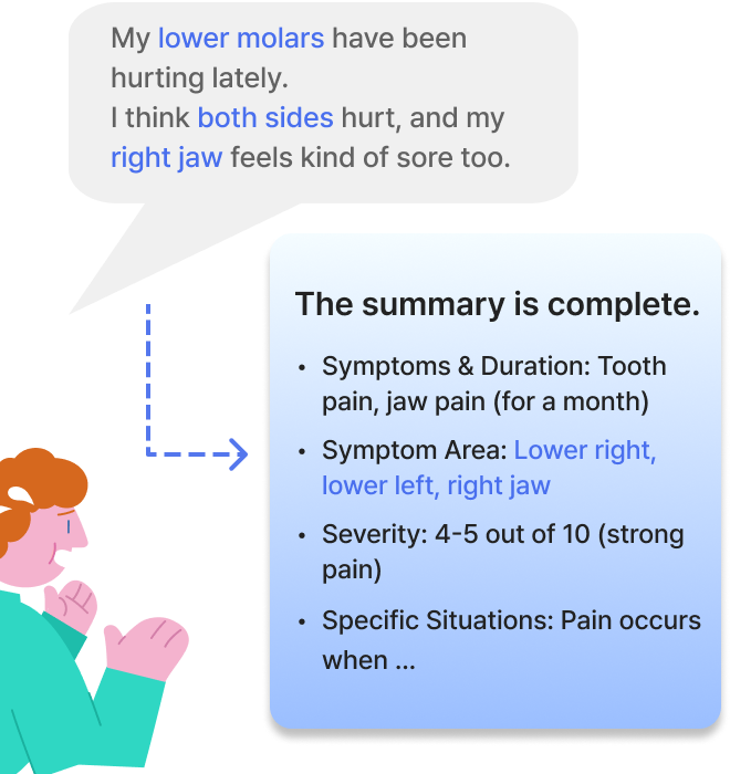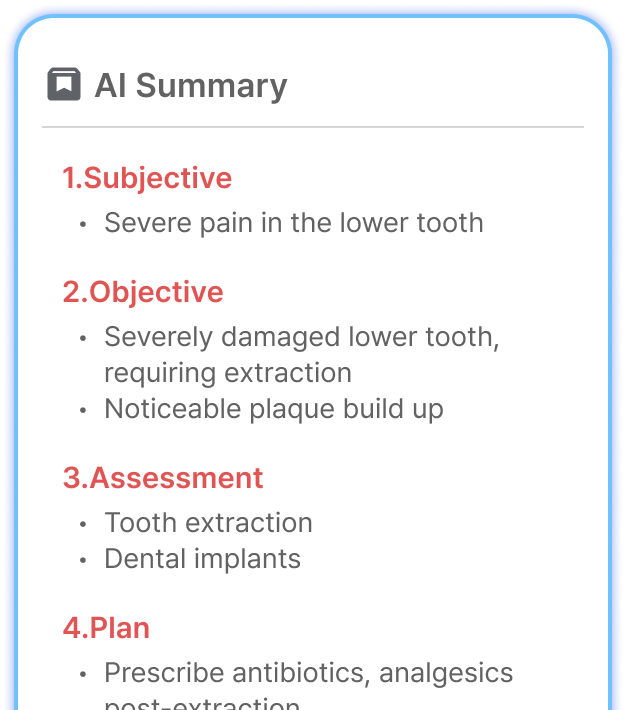 It also provides customized, key-point summaries of dental consultations and treatment plans,